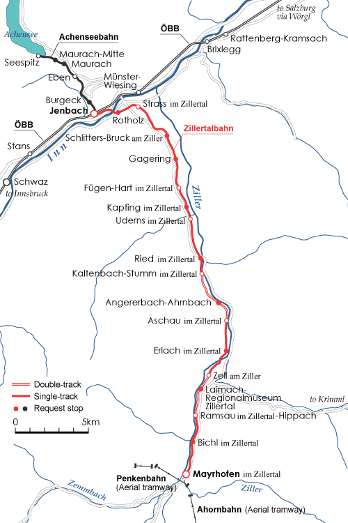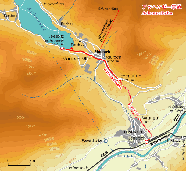 37:アッヘンゼー鉄道は、チロル州のイェンバッハ Jenbach からアッヘン湖 Achensee の湖畔にあるゼーシュピッツ Seespitz の間6.8kmを結ぶリッゲンバッハ式ラック鉄道。軌間1000mm、最急勾配160‰。1889年の開業以来、蒸機で運行されてきた貴重な存在。途中のエーベン Eben がサミットで、往路では機回しが行われる。2020年3月の運営会社倒産で一時期運行できなくなったが、2022年のシーズンに再開された。 オーストリアのラック鉄道-アッヘンゼー鉄道 I オーストリアのラック鉄道-アッヘンゼー鉄道 II アッヘンゼー鉄道の危機と今後