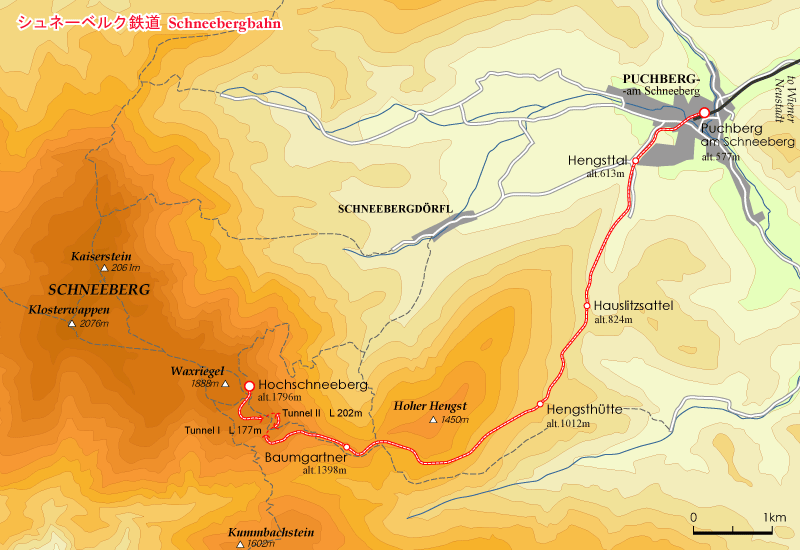 8:ゼメリング鉄道は、ÖBB(オーストリア連邦鉄道)南部本線 Südbahn のうち、グログニッツ Gloggnitz からゼメリング Semmering 峠を経てミュルツツーシュラーク Mürzzuschlag まで41.8kmの別称。開通は1854年で、アルプスを越えた最初の鉄道としてユネスコ世界遺産に登録されている。複線電化の重要幹線ながら、最小曲線半径190m、勾配25‰の厳しい線形で、標高898mまで上りきる。目下、バイパスとなる基底トンネル工事が進捗中で、2027年に完成予定。 ゼメリング鉄道はなぜアルプスを越えなければならなかったのか ゼメリング鉄道を歩く I ゼメリング鉄道を歩く II